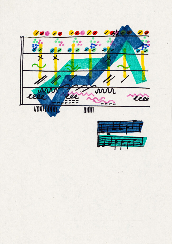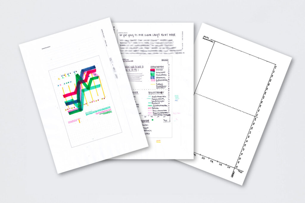 Ein Jahr lang habe ich Daten zu verschiedenen Aspekten meines Gesundheitszustandes erfasst. «Data humanism» ist ein gefühlsgetriebener Ansatz, das persönliche Empfinden ist beim Erfassen der Daten relevant. Aus diesen Datensätzen entstanden meine persönlichen Balken- und Kurvendiagramme. Das müsste doch auch mit Audio funktionieren?!, dachte ich.