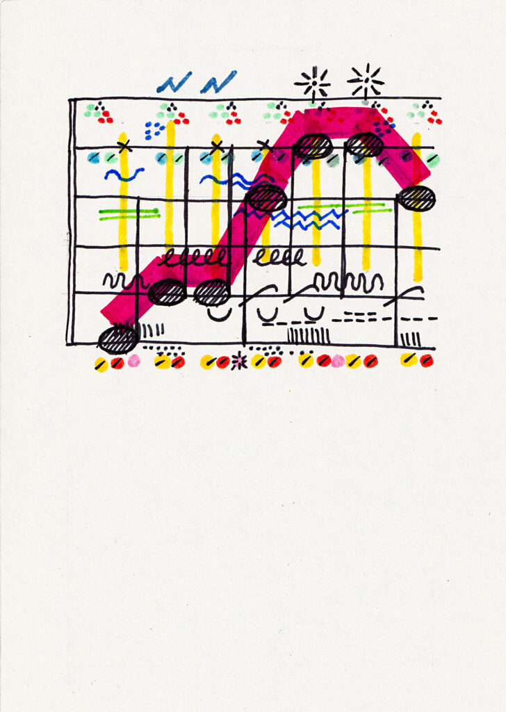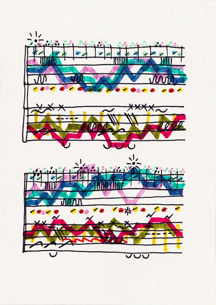 Daphne Oram, Pionierin, Komponistin und Erfinderin elektronischer Musik, zeigt in «Was ist elektonische Musik?» (1969) und später in «An Individual Note –of Music, Sound and Electronics» (1972 ) wie elektronische Klänge mithilfe visueller Muster erzeugt werden können.
